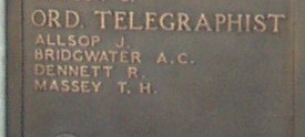 Ordinary Telegraphist Bristol Z/6552 JOSEPH ALLSOP of the Royal Naval Volunteer Reserve Born on Sunday 28thJanuary 1900 killed on Friday 15th February 1918 aged 18 serving on the H.M. Drifter Clover Bank (Built in 1917. 92 tons. 1-6pounder gun) Skippered by John James Colby.
