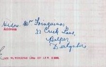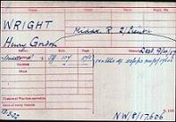 The front and back of H G Wrights Medal Index Card