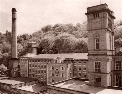 The first mill was built from the stone of Steeple Hall, Wirksworth, which Arkwright had bought from a Mr Greensmith, and demolished. The mill was 5 storeys high and the machinery was driven night and day. About 200 people worked there in 12 hour shifts, spinning at night and carding, combing etc in the day.